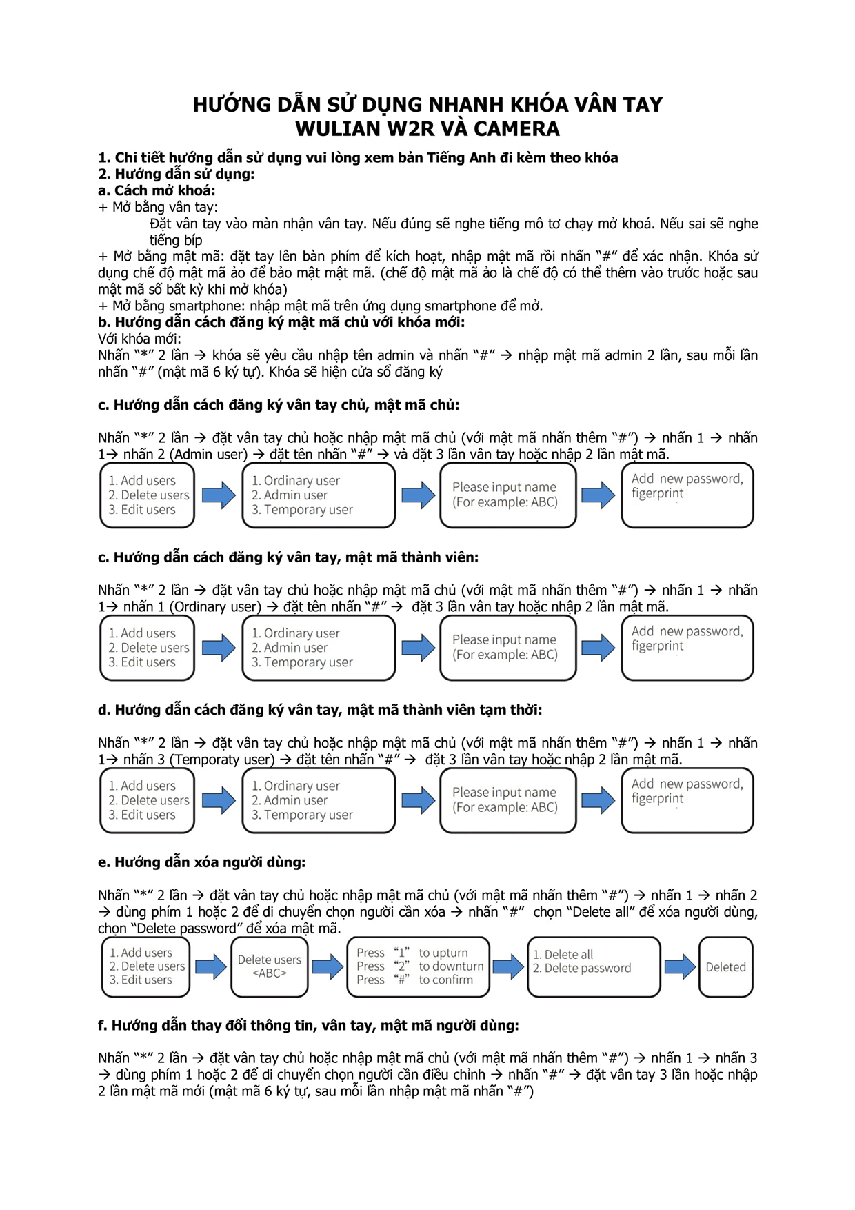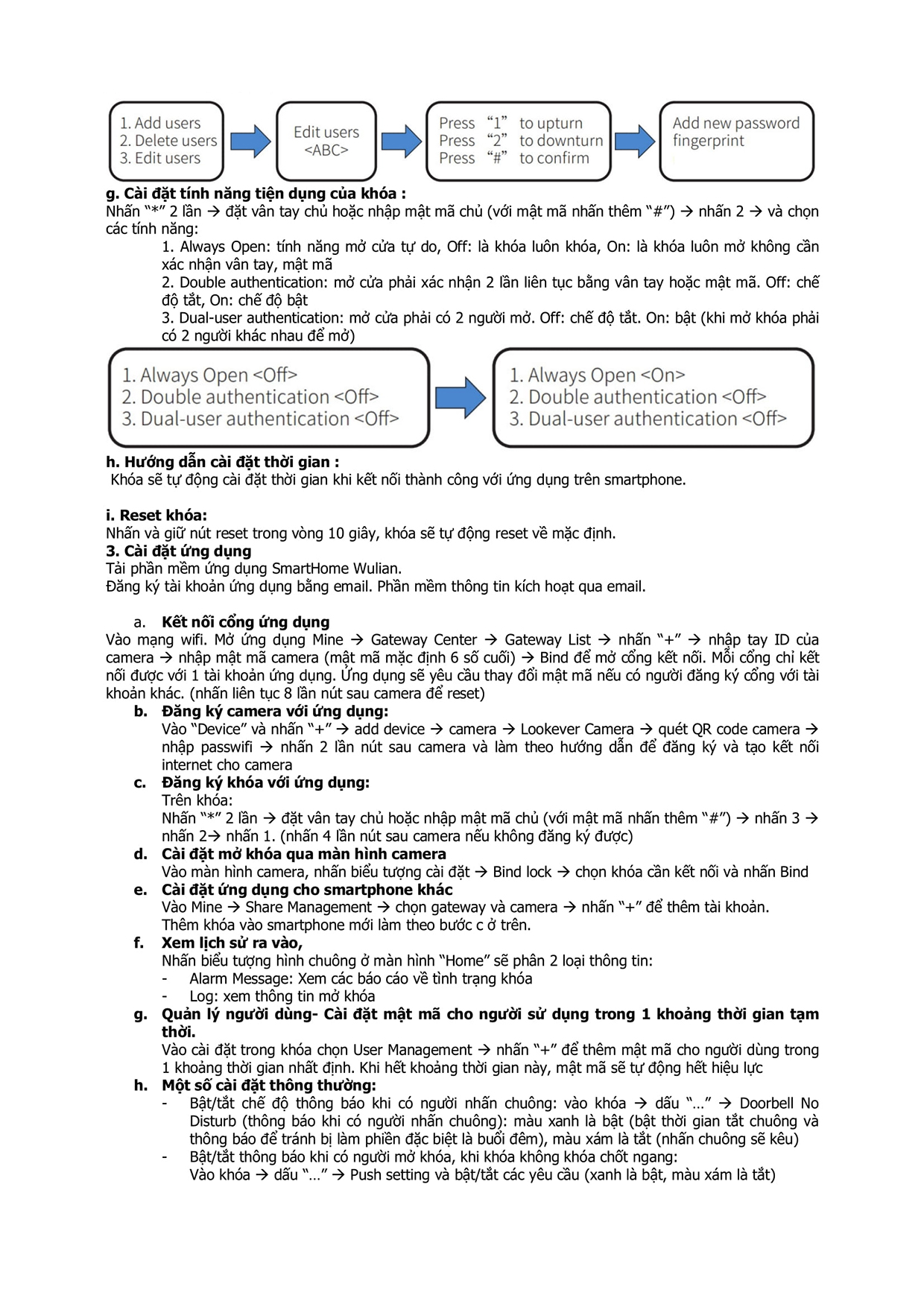 – Cài đặt mật mã cho người dùng tạm thời trong một khoảng thời gian. Khi hết thời gian cài đặt, mật khẩu sẽ tự động bị vô hiệu